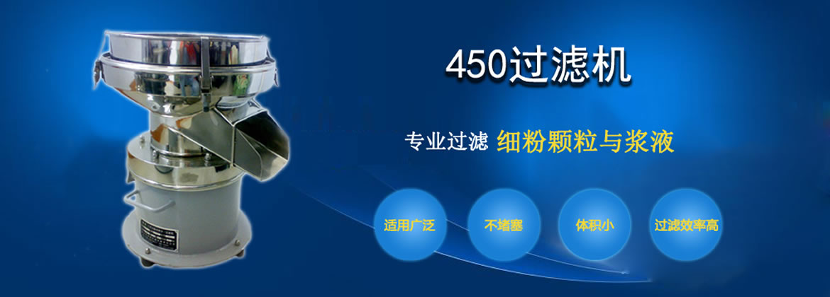 450過濾機(jī)是為適用于漿液過濾作業(yè)、粉粒分級(jí)而專門設(shè)計(jì)一種高效率、低噪音小型單層篩分機(jī),它集液體過濾、粉粒分級(jí)功能為一體。在面粉、油漆過濾行業(yè)表現(xiàn)尤為卓越,如325目過濾比重1.1的噴漆料,每小時(shí)可達(dá)1200公升,30目篩分面粉每小時(shí)可處理700公斤。