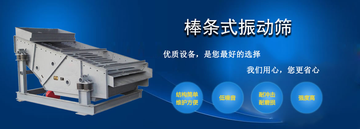 國盛牌棒條式振動(dòng)篩簡稱棒條篩,采用盲板加棒條形式的給料面,樣式分為:激振器式、振動(dòng)電機(jī)式、吊掛式三種,適用于破碎機(jī)前大塊物料的均勻篩分,特別適用于黑色或有色金屬礦石、建筑石料粗碎或中碎前的給料用。