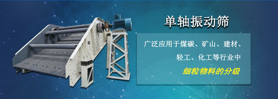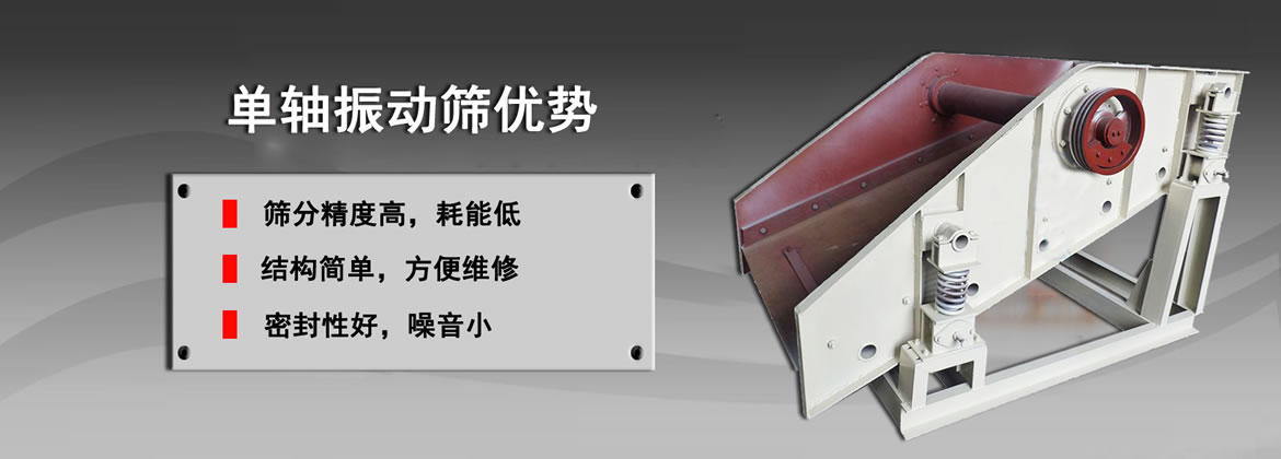 【產(chǎn)品介紹】:單軸振動(dòng)篩層數(shù)有單層和雙層,專門針對(duì)中細(xì)粒物料的分級(jí),單軸篩運(yùn)動(dòng)軌跡 為圓,具有結(jié)構(gòu)簡(jiǎn)單、維修方便、作業(yè)可靠的優(yōu)點(diǎn)。