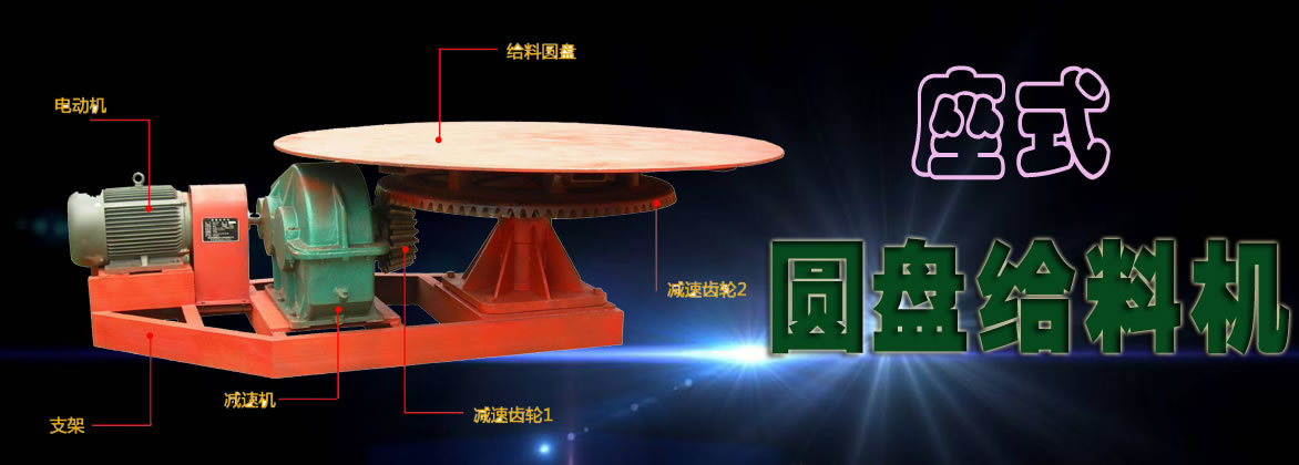 圓盤給料機的電動機通過皮帶的轉(zhuǎn)動再帶動減速機運行,使得圓盤勻速的繞一側(cè)方向旋轉(zhuǎn),物料進入圓盤上的襯板之后,就會跟著圓盤一起轉(zhuǎn)動,旋轉(zhuǎn)到一定位置,物料就會被襯板上的刮刀刮出去,進入下一道工序,達到給料的目的。